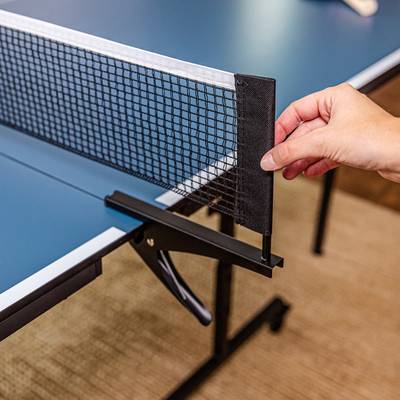 Complete with a 72” clipper net and post set. Featuring a sturdy, spring clamp post system, that can be assembled and removed from the table in seconds with a simple squeeze of the clamp.