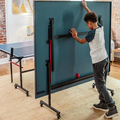 - EASY TRANSPORTABILITY AND SETUP - Easily roll and transport table halves using 2" lockable wheels for convenient storage and setup. Easily attach and remove the basic 72" clamp-style net and post.