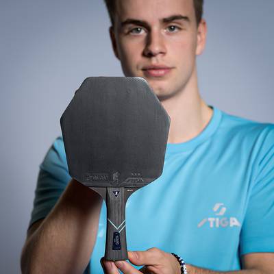 STIGA's first lifestyle table tennis paddle in our revolutionary Cybershape design! Cybershape Future 3-star is a 3-star table tennis racket developed and designed together with STIGA player and deputy world champion Truls Möregårdh. Truls is undoubtedly the most promising talent in Swedish table tennis. Already as a 17-year-old, he progressed from the forests of Småland to Japan’s top league, by way of a Swedish championship gold and then on to Texas and a World Championship silver medal in 2021. Cybershape Future 3-star is an ultimate combination of a 5-layer wooden blade, a concave handle for perfect comfort and grip, and the ITTF-approved Truls Möregårdh rubber, based on DNA Platinum's unique playing characteristics and adapted for players in development. This is a premium table tennis racket, designed for offensive players. It’s ideal for those who want optimal control and touch while developing playing skills. Behind the magic is the WRB technology, which gives the player increased speed in the strike, with more power and improved touch. This complete table tennis paddle makes play easy thanks to Cybershape's unique design and properties. Our research has shown that for the majority of players, the optimal hitting area lies in the upper half of the blade. That's why we wanted to create an easy-play paddle that will also take your game to the next level. Cybershape offers a larger hitting surface in the upper section of the blade and reduced hitting surface on the lower part of the blade, which means that the blade is not too top-heavy, thus offering perfect balance together with the ultimate sweet spot. With Cybershape Future 3-star, we're challenging the limits of what's possible in table tennis technology to bring you something completely new. Take your game to the next level! The shape also allows a larger part of the hitting surface to come closer to the table in return play. A full 6.5 cm of the hitting surface aligns with the table versus 2.5 cm for a round blade. You’ll not only have a topnotch bat – you’ll also be the one who wins the most points.