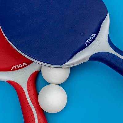 The STIGA Flow 2 player table tennis racket set is a versatile table tennis racket and ball set that includes 2 outdoor rackets (red and blue) and two outdoor balls (white). Designed for indoor/outdoor play, the Flow racket is weatherproof and shock-resistant and made from the toughest materials—ideal for high use table tennis locales like camps, offices, and schools. With a handle made of thermoplastic elastomers and a blade made of polypropylene and glass fibers, the Flow will stand up to the toughest recreational play. The Flow’s blade hardness offers superior control for an indoor/outdoor racket and is the ideal companion for STIGA outdoor tables. The included STIGA Outdoor Table Tennis Balls are wind and water resistant and incredibly durable. Performance ratings of Speed: 45, Spin: 45, and Control: 90.