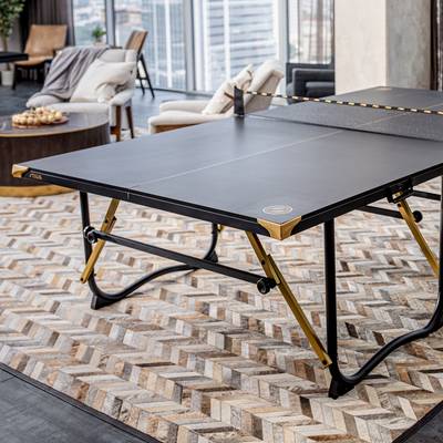 Whether you’re looking to crank up the competition or a casual game, the STIGA Gold Star Table Tennis Table is the perfect portable option for any environment. This Gold Star Table sets the standard with it’s hinged design making it easy to fold for compact storage and takes up 85% less space when folded compared to traditional tables. The built-in wheels and carry handles make transportation a breeze and can fit inside most SUVs. This table is regulation size at 30 inches H x 60 inches W x 108 inches L and includes integrated ball storage. Made with a heavy-duty 5/8-inch top, 1.5-inch powder-coat steel legs and 1.5-inch steel aprons for increased durability. Nets and posts are included.
