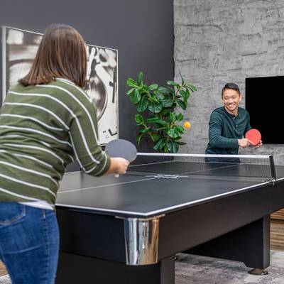 Easily transform your pool table or flat surface into a premium table tennis table. Regulation size at 9' x 5' and 15mm thick tabletop.